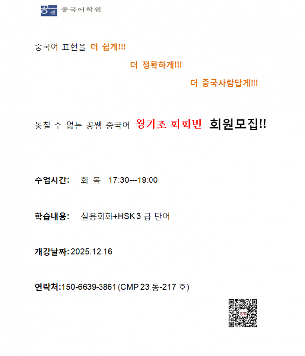 공쌤 중국어 단톡방(2)에 초대합니다.누구나 환영해요큐알코드 스캔하시...